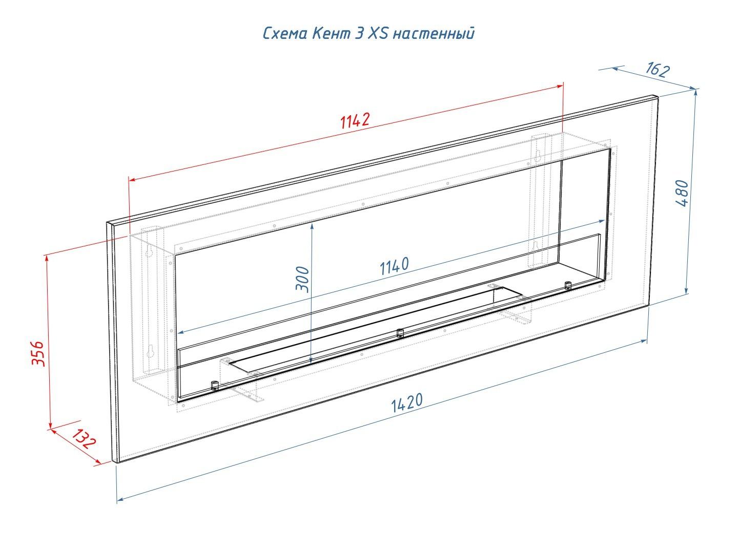 Описание настенного биокамина Lux Fire "КЕНТ 3 Н" XS
