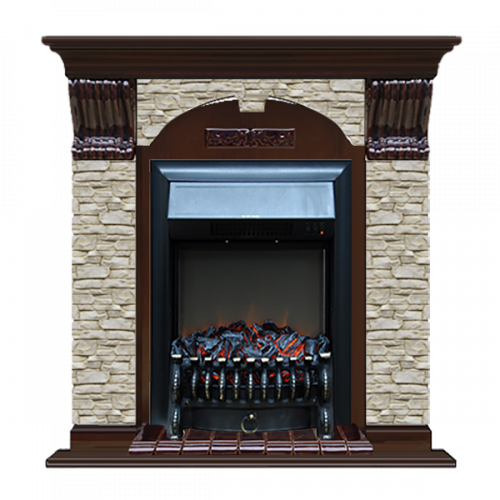 Каминокомплект Glenrich Арочный Грот однотонный (дуб)+Fobos Black