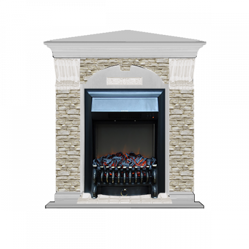 Каминокомплект Glenrich Арочный Грот однотонный угловой (беленый дуб)+Fobos Black