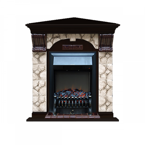 Каминокомплект Glenrich Арочный Карелия угловой (венге)+Fobos Black