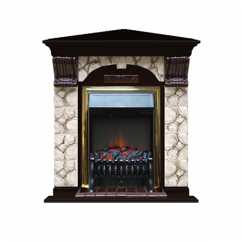 Каминокомплект Glenrich Арочный Карелия угловой (венге)+Fobos Brass