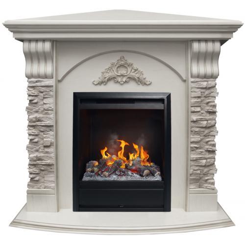 Угловой каминокомплект «Athena Corner GR» от производителя Real Flame, оборудованный современным паровым очагом «3D Olympic», является новинкой в своей серии. От классических моделей в своей линейке он отличается сероватым оттенком камня, который придает некоторый налет старины и основательности. В сочетании с текстурой белого дуба такой камень смотрится более выгодно. Камин имеет угловую конструкцию, что делает актуальной его установку в непроходных помещениях, где точно имеется свободный угол. Многие считают угловые камины слишком массивными, но на самом деле именно такие модели наиболее рационально используют жилое пространство. А представленный комплект отличается и относительно небольшими габаритами, благодаря чему его можно устанавливать в помещениях малой площади.