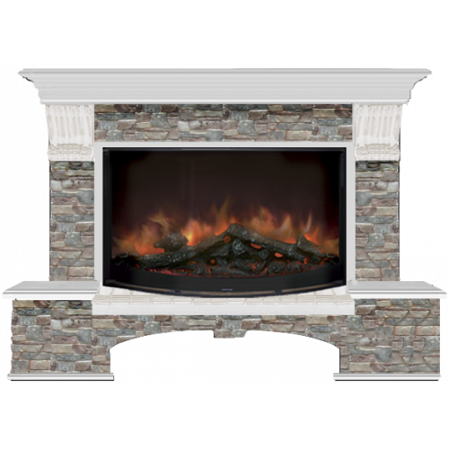Каминокомплект Glenrich Бостон Грот цветной 86 (беленый дуб)+Rondo S86