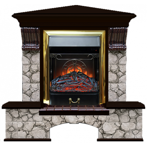 Каминокомплект Glenrich Бостон К Карелия угловой (венге)+Majestic Brass
