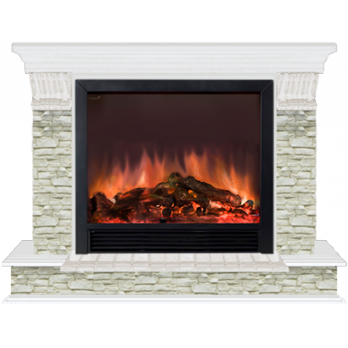 Каминокомплект Glenrich Панорама Грот однотонный Sharm 39 (белый)+Sharm 39 BL