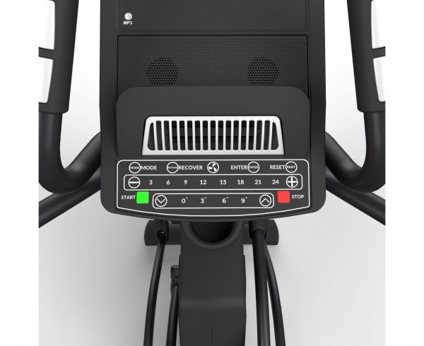 Чтобы тренировка не была скучной, воспользуйтесь возможностью слушать музыку, смотреть фильмы или видео с вашего смартфона. Для этого есть 2 динамика, разъем MP3 и поддержка Bluetooth. На передней консоли есть поставки под бутылку и планшет, а встроенный вентилятор сделает занятия комфортными даже в жаркий летний день. Пульс считывается автоматически при помощи сенсоров на поручнях.